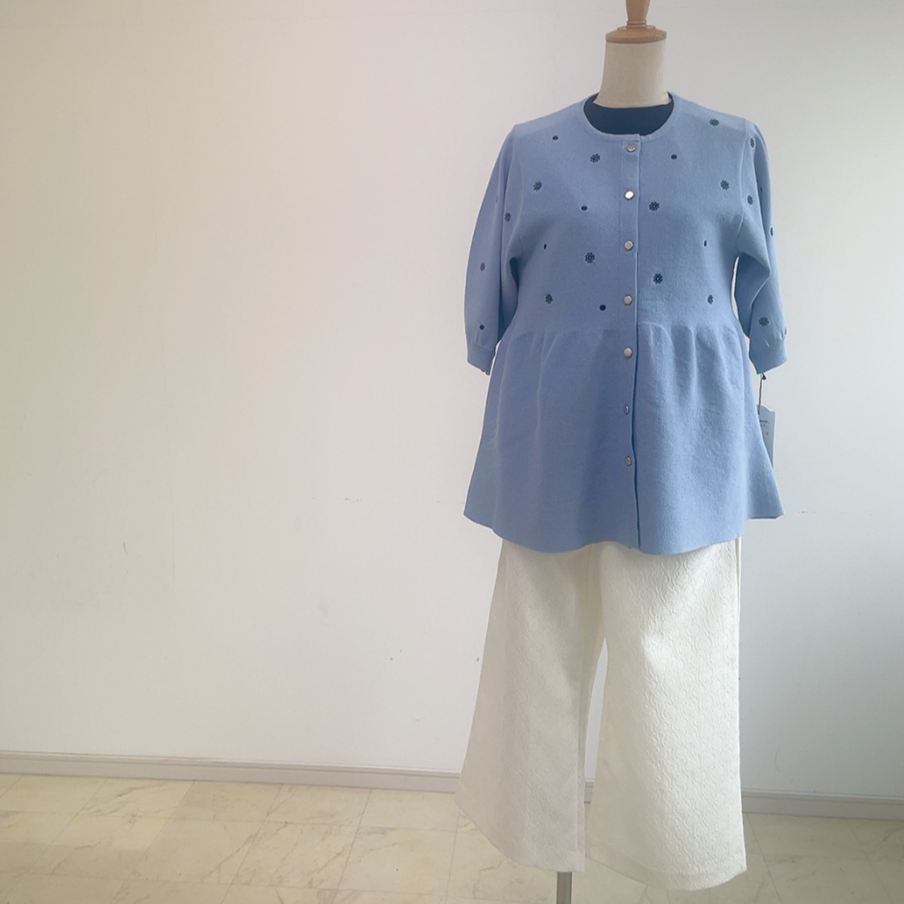 【SALE】14G ドット刺繍五部袖カーディガン