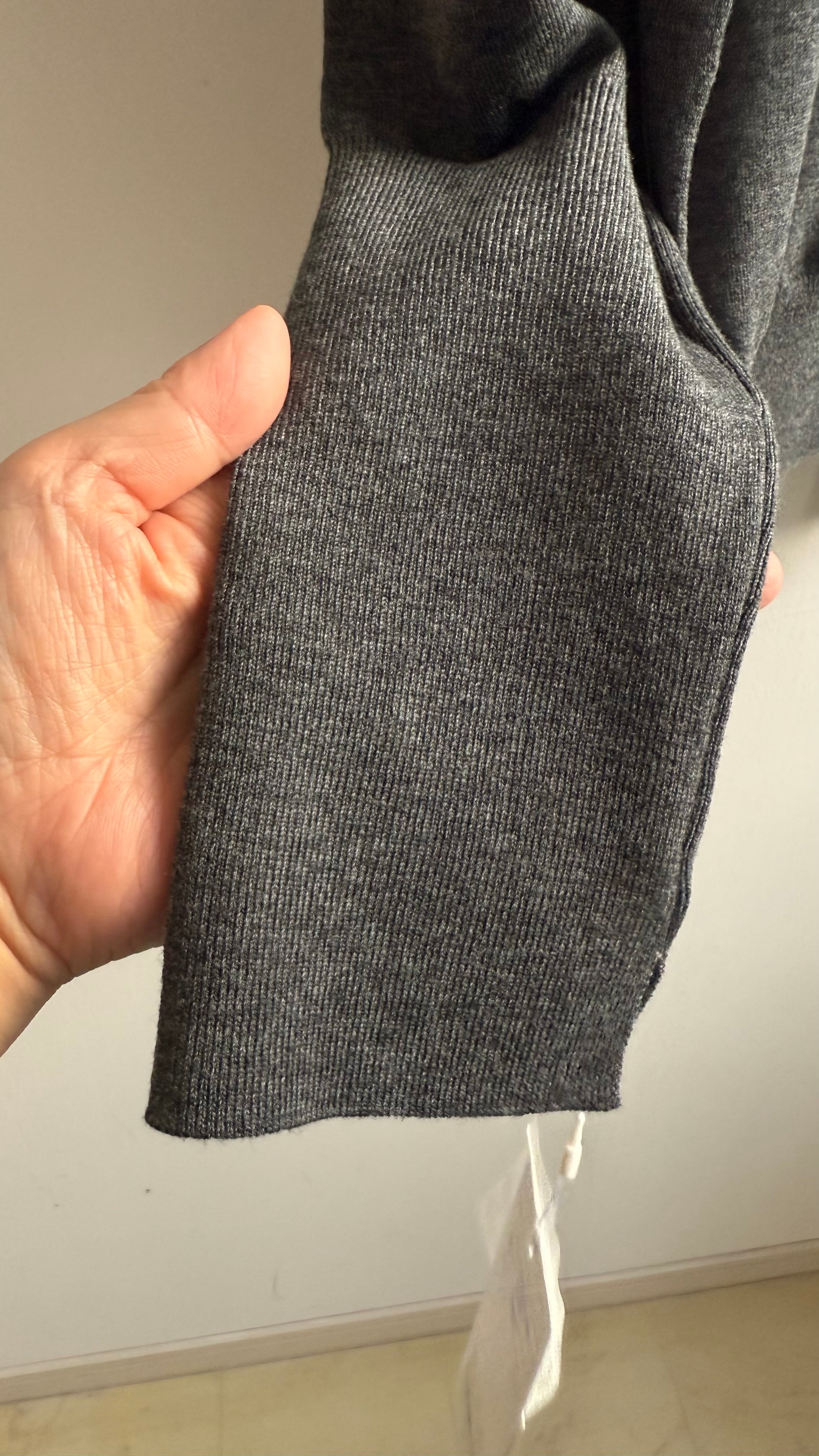 襟元、袖は細リブになっています。