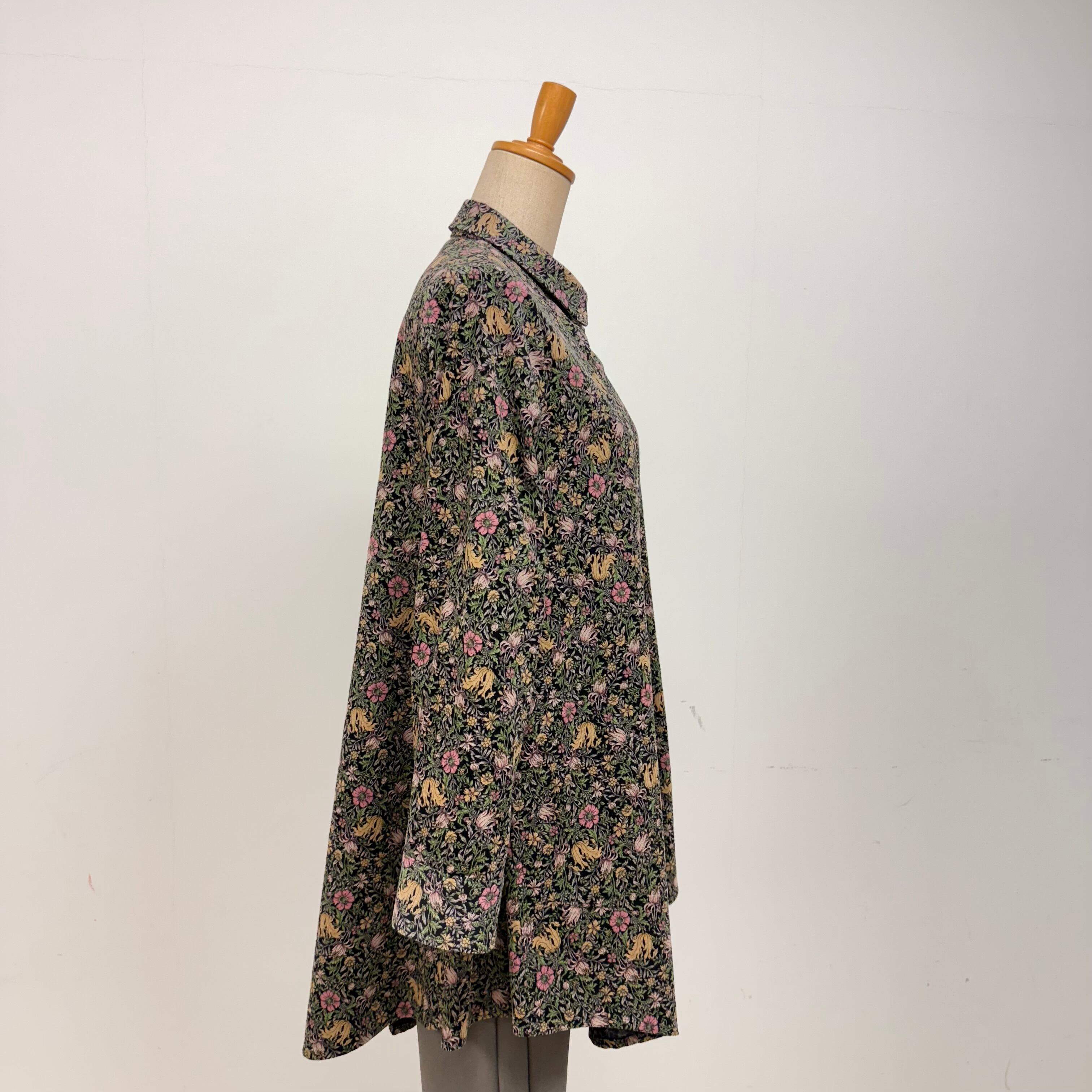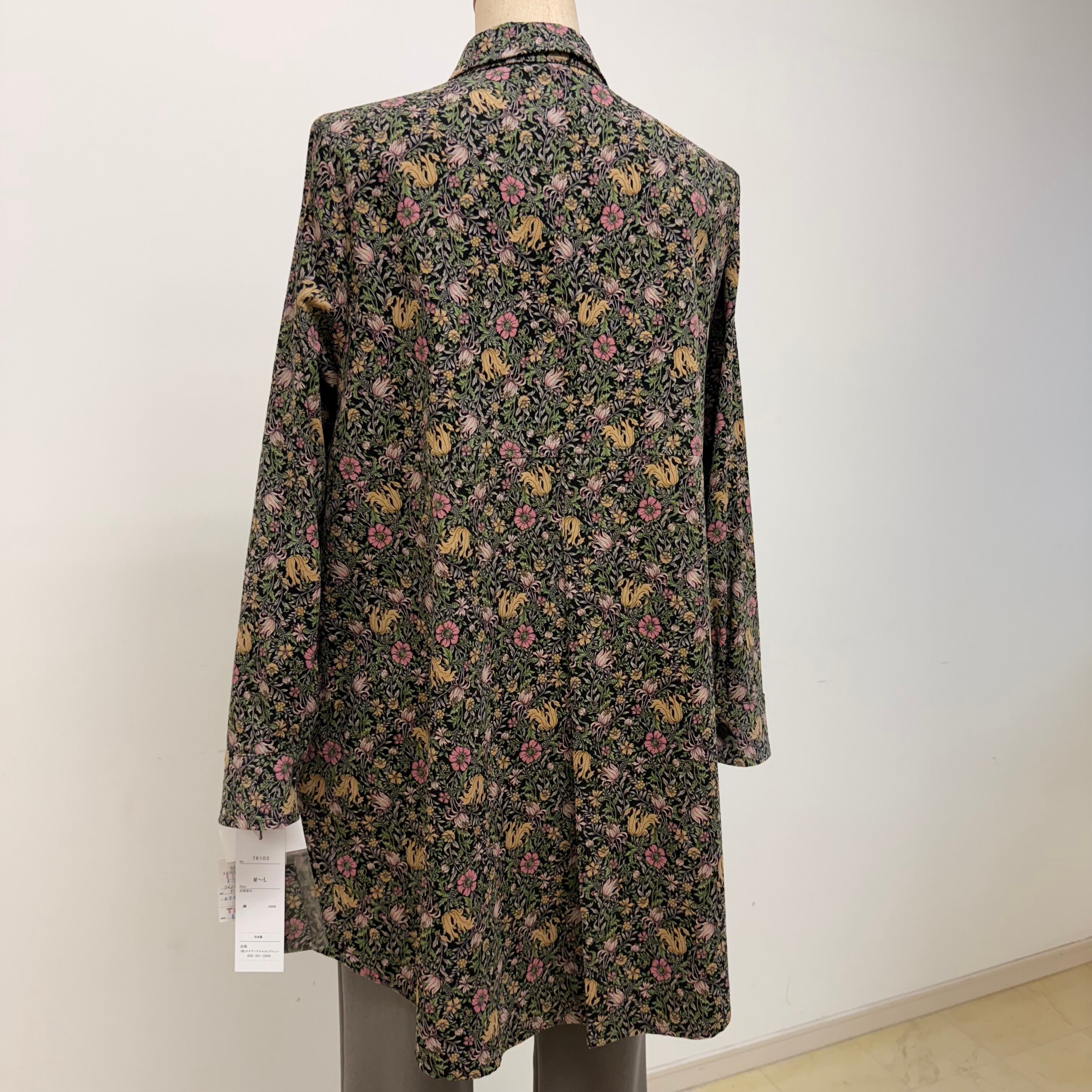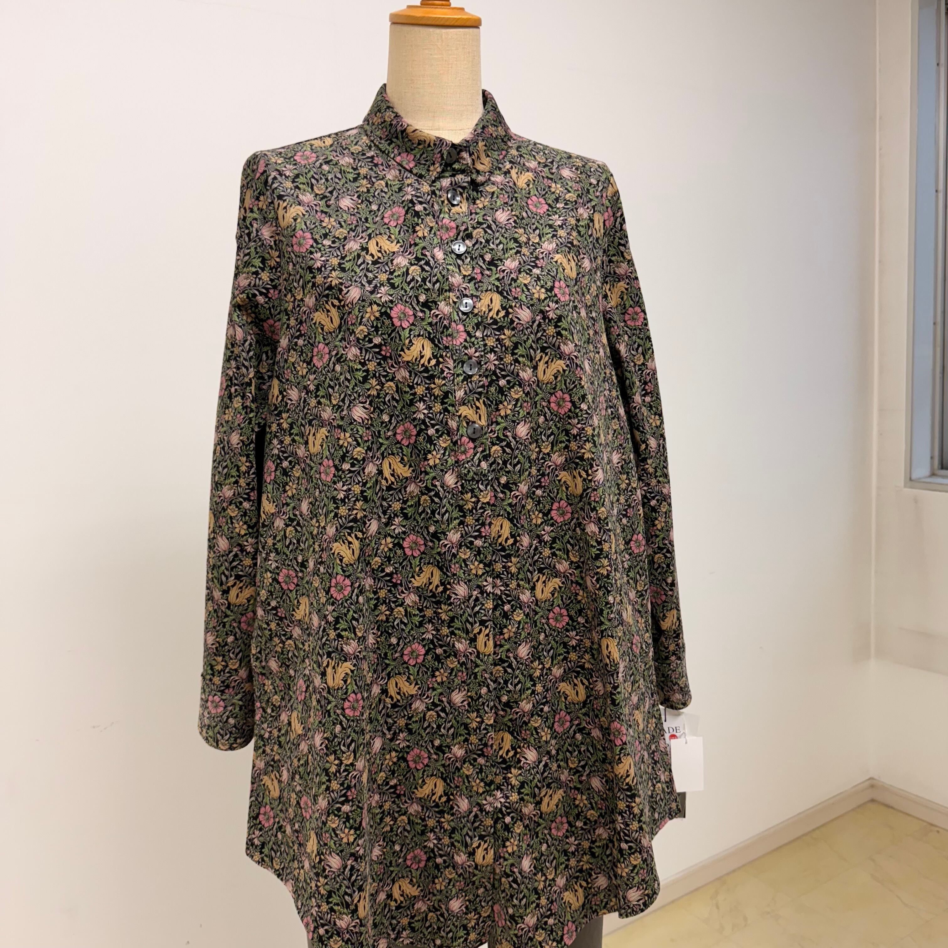 細コール天花柄ロングブラウス