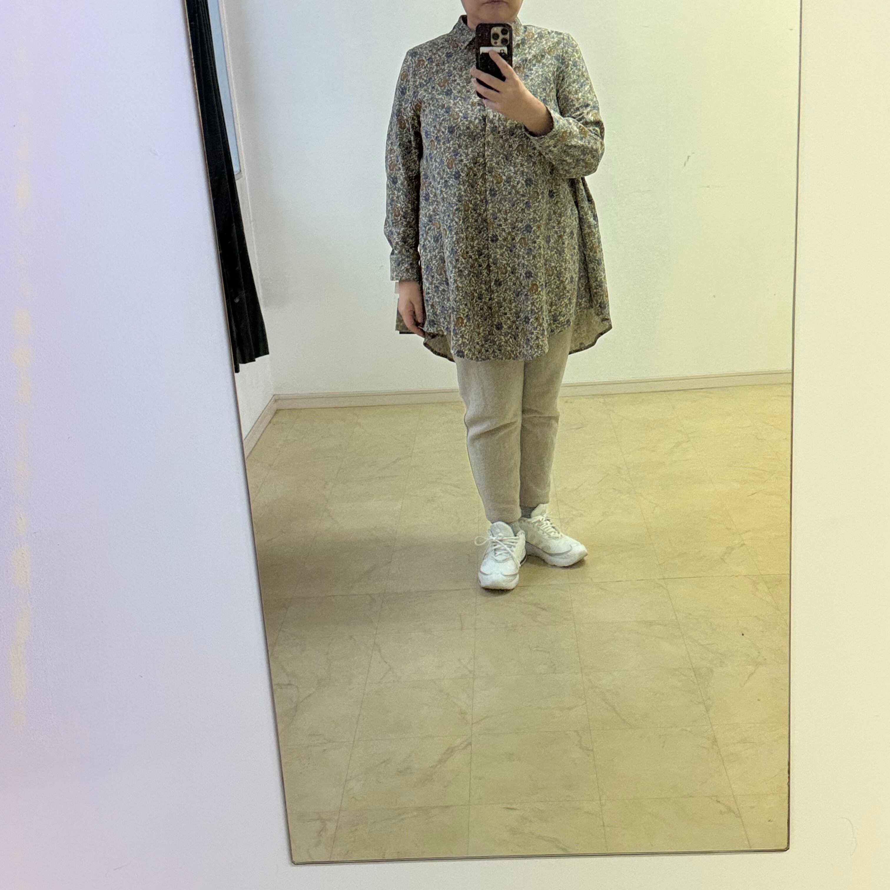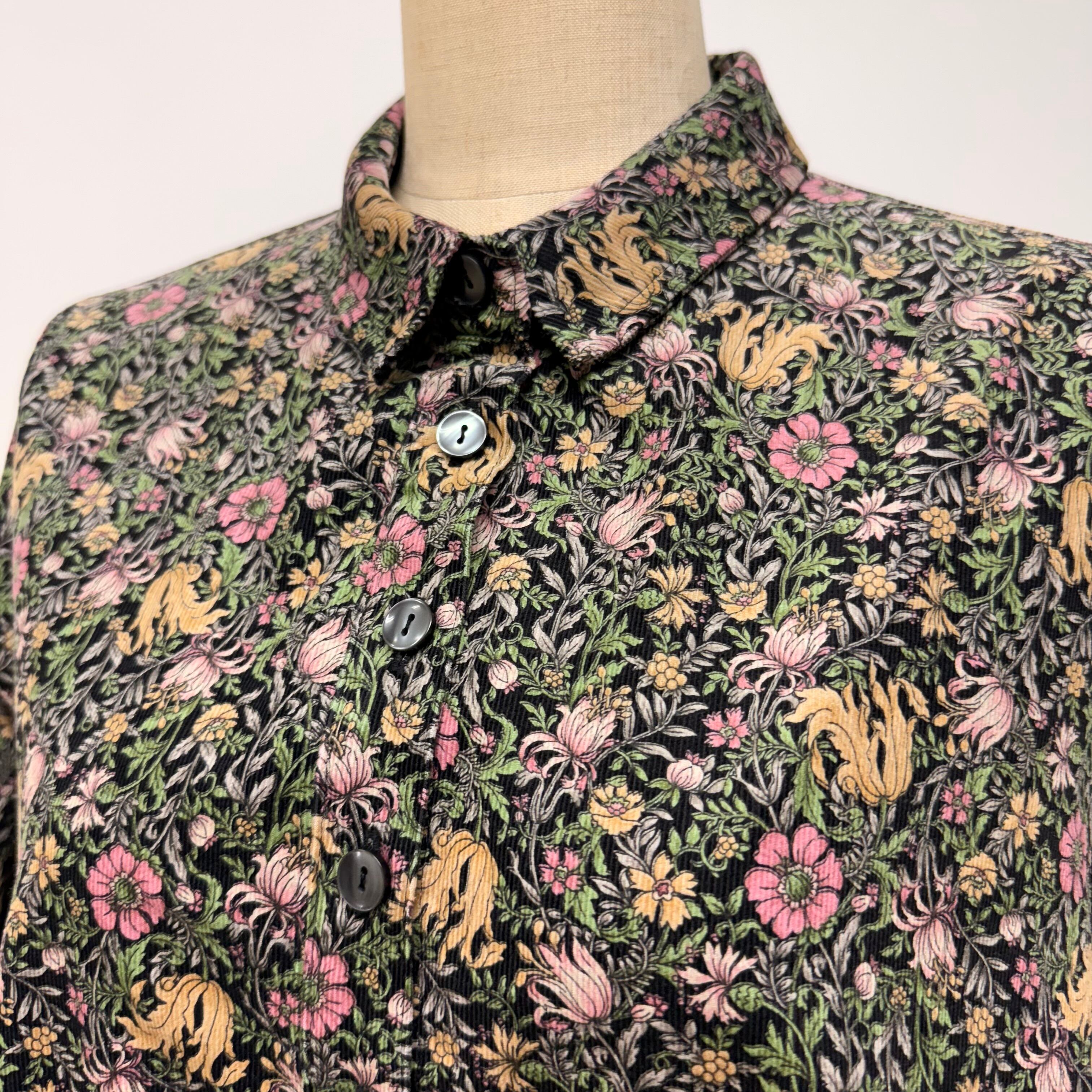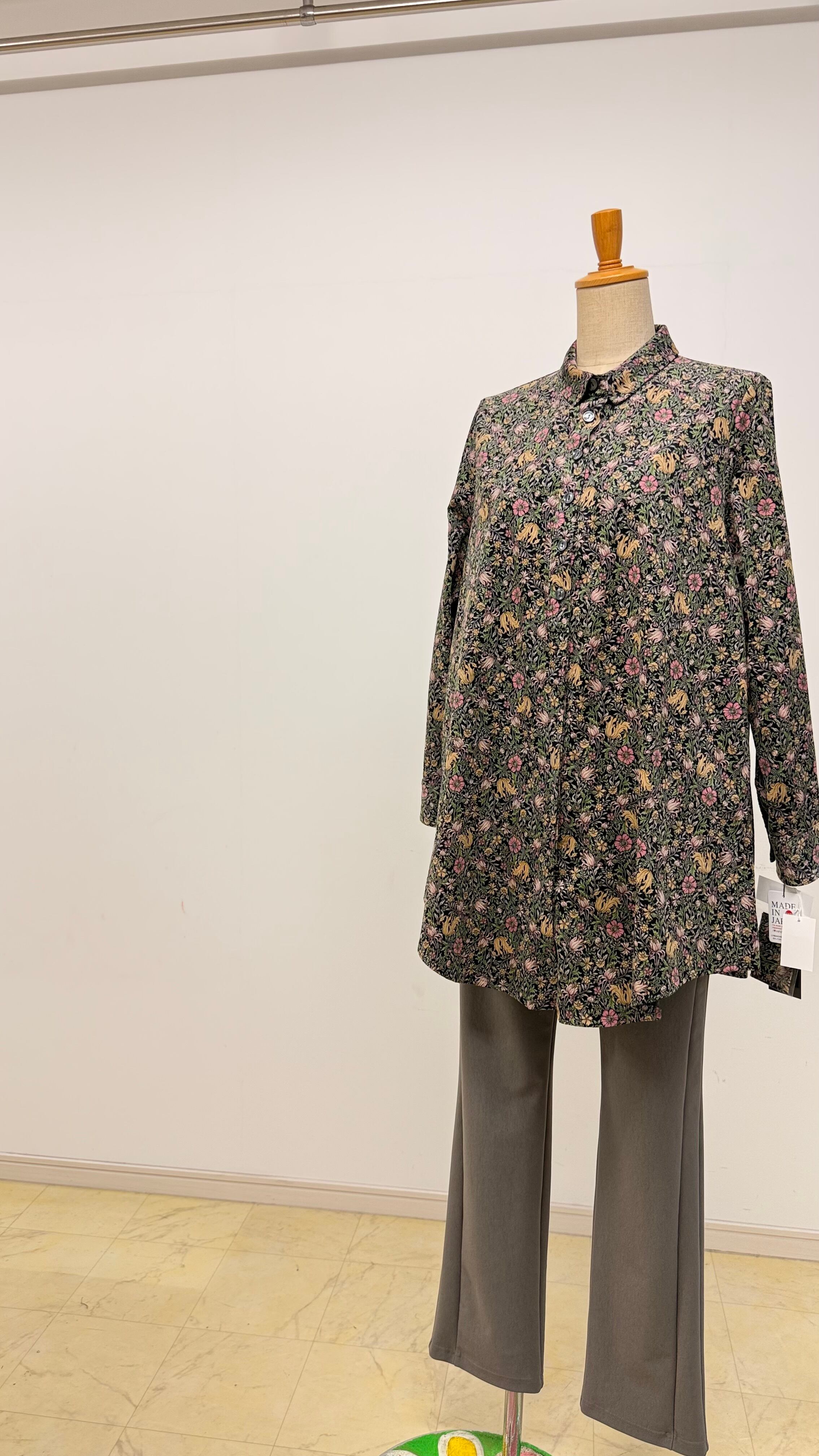 細コール天花柄ロングブラウス