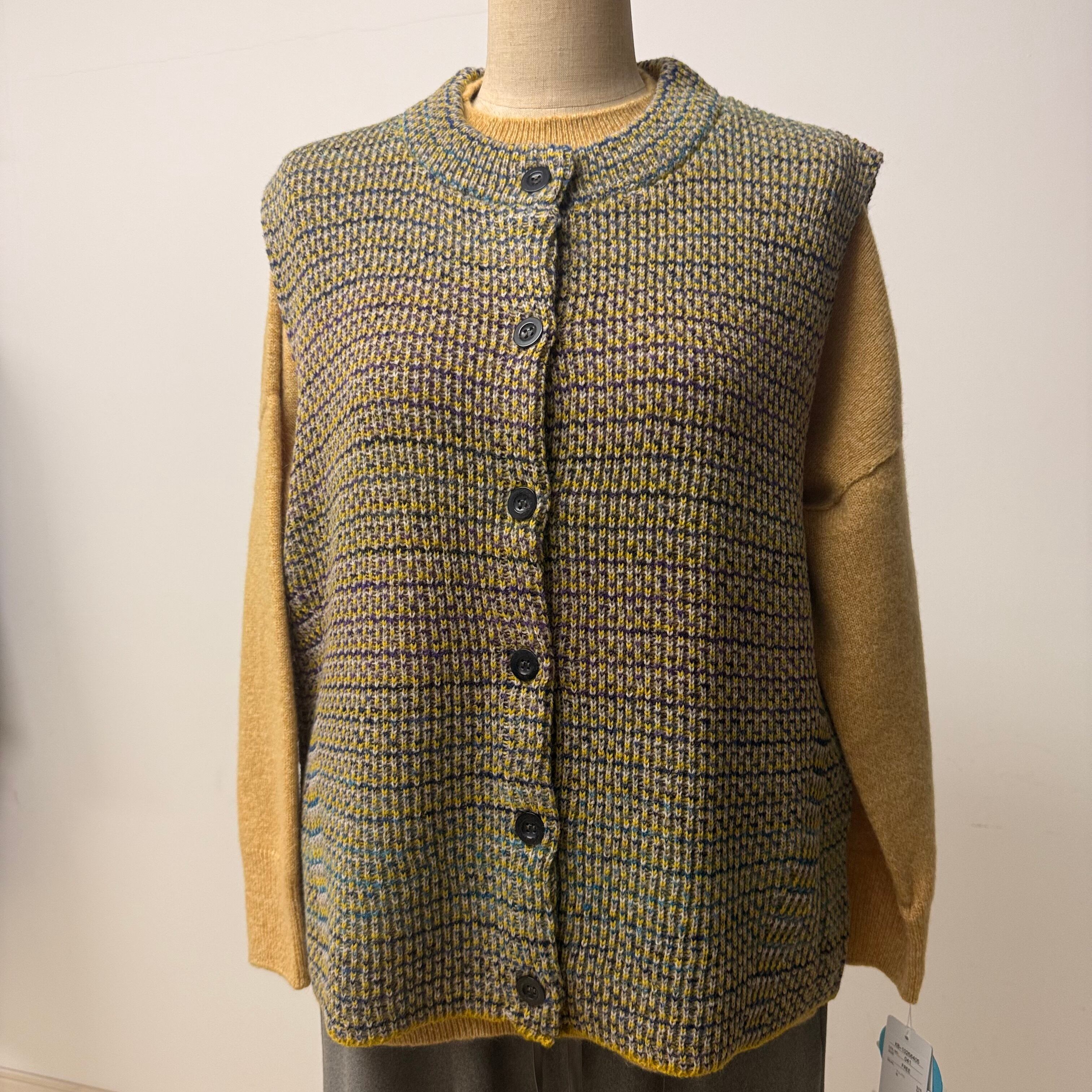 かすりニット前開きベスト