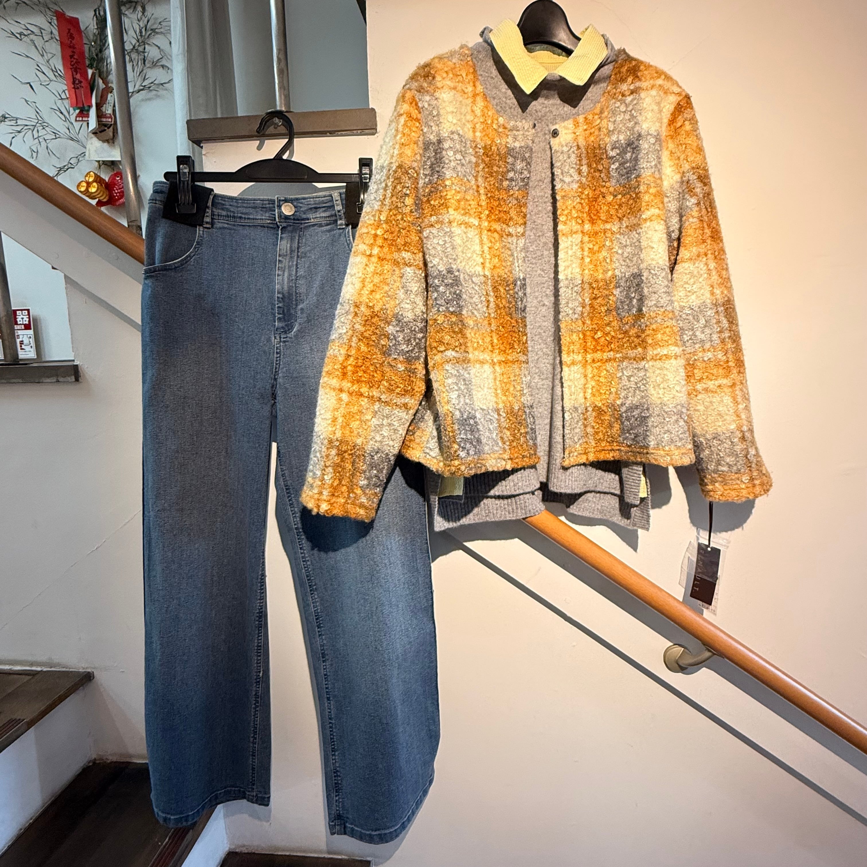 チェックノーカラージャケット