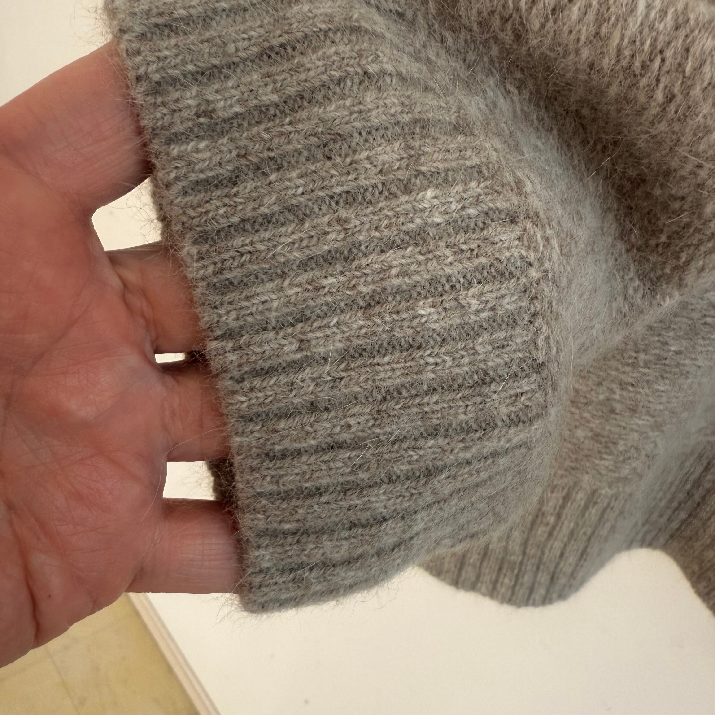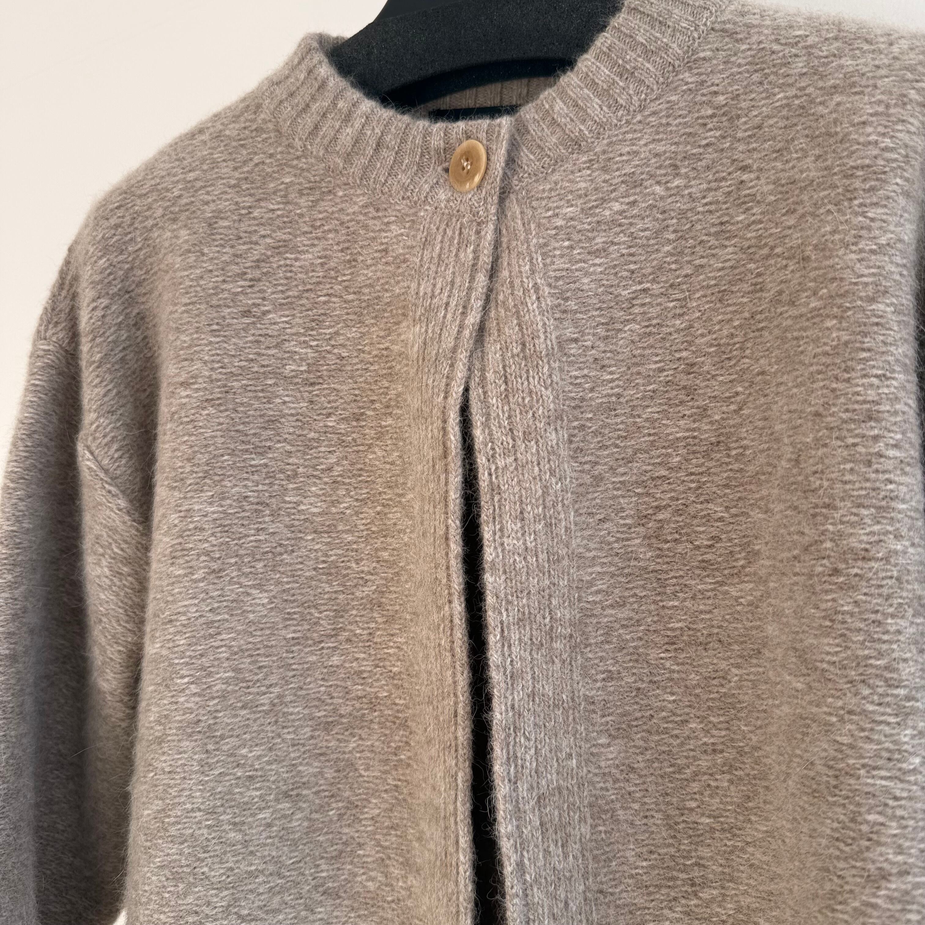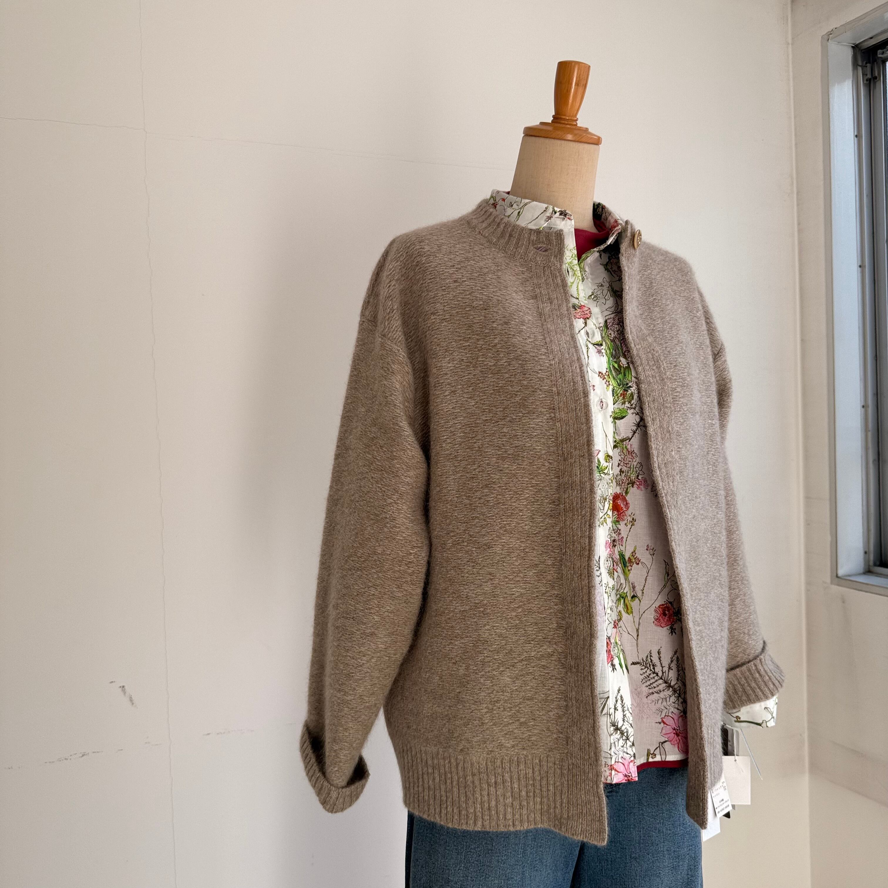 毛60、フォックス30%のしっかりとした厚めの編み地のあたたかいカーディガンです。