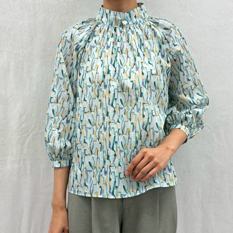 フランス製生地Deveaux幾何柄ブラウス