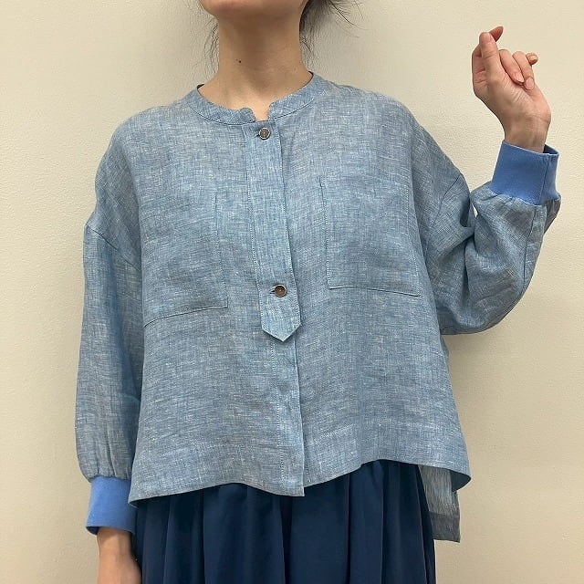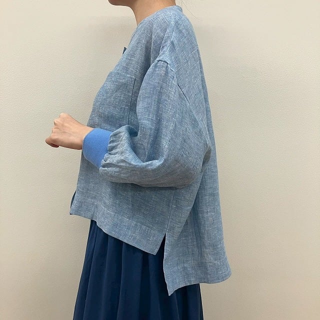 60 袖リブフレンチリネンショートブラウス