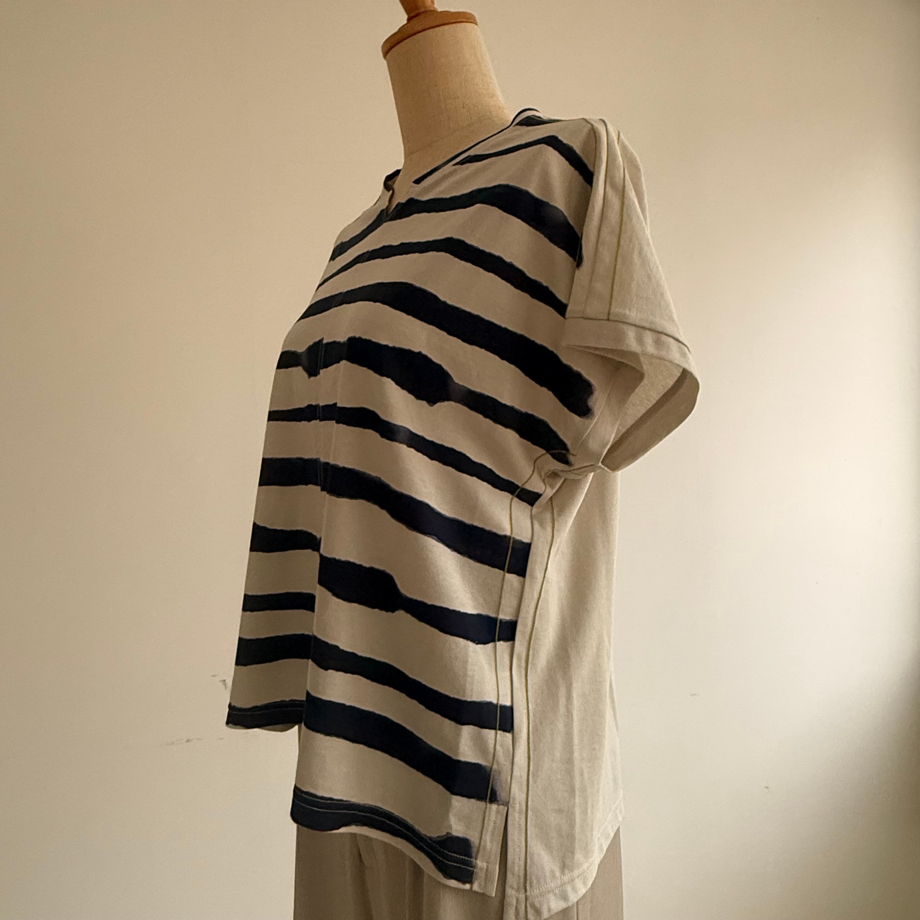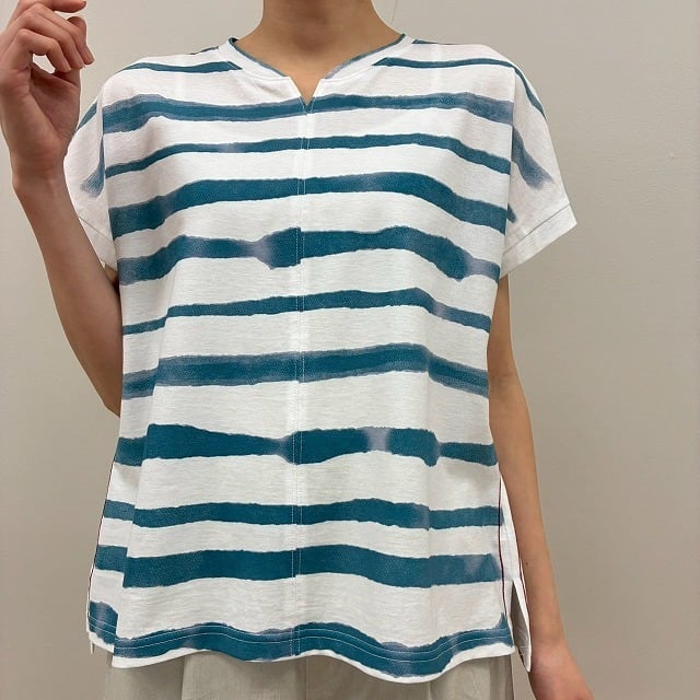 強撚ボーダープリント天竺カットソー