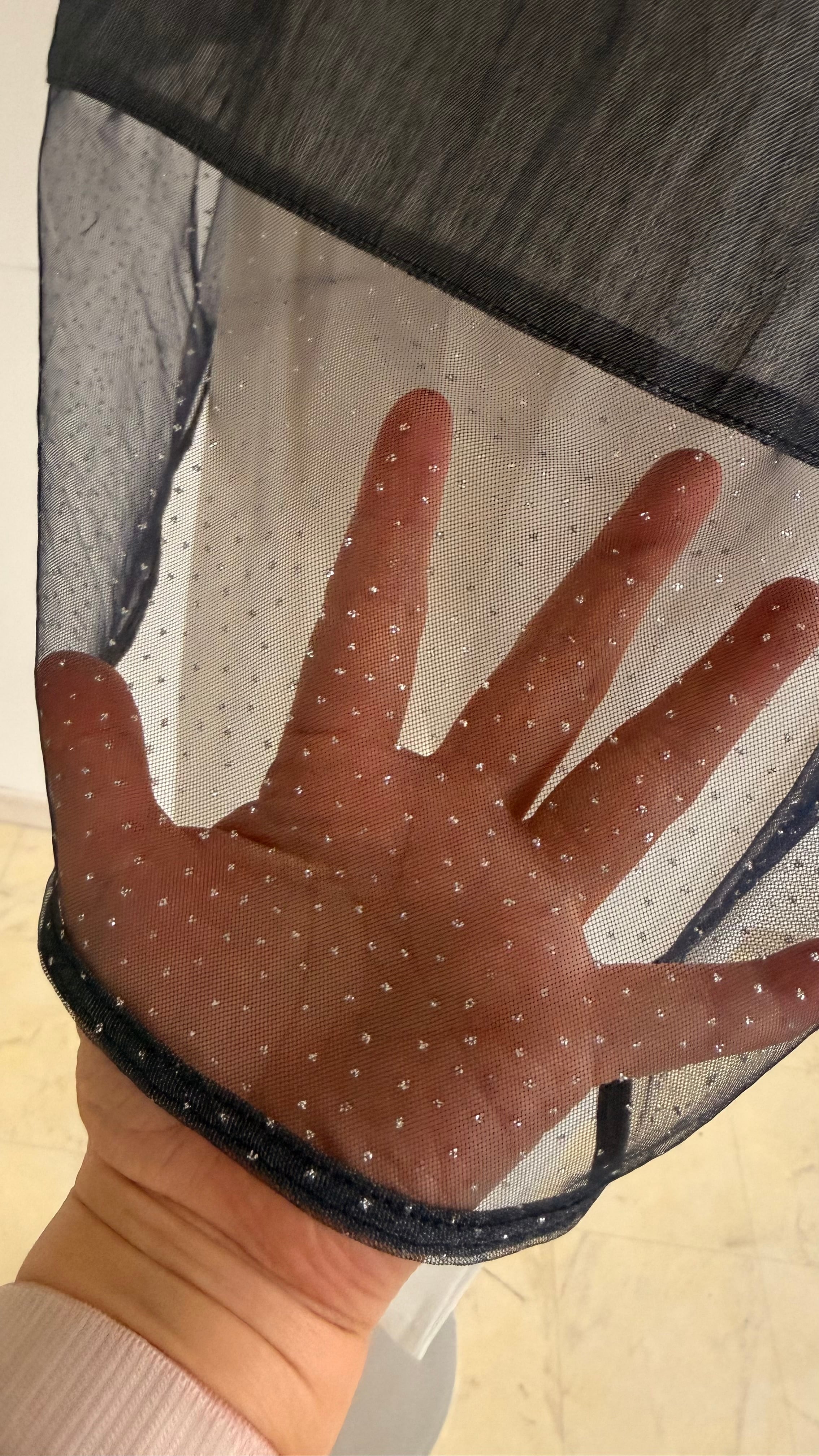 後ろの裾がキラキラメッシュのブラウス