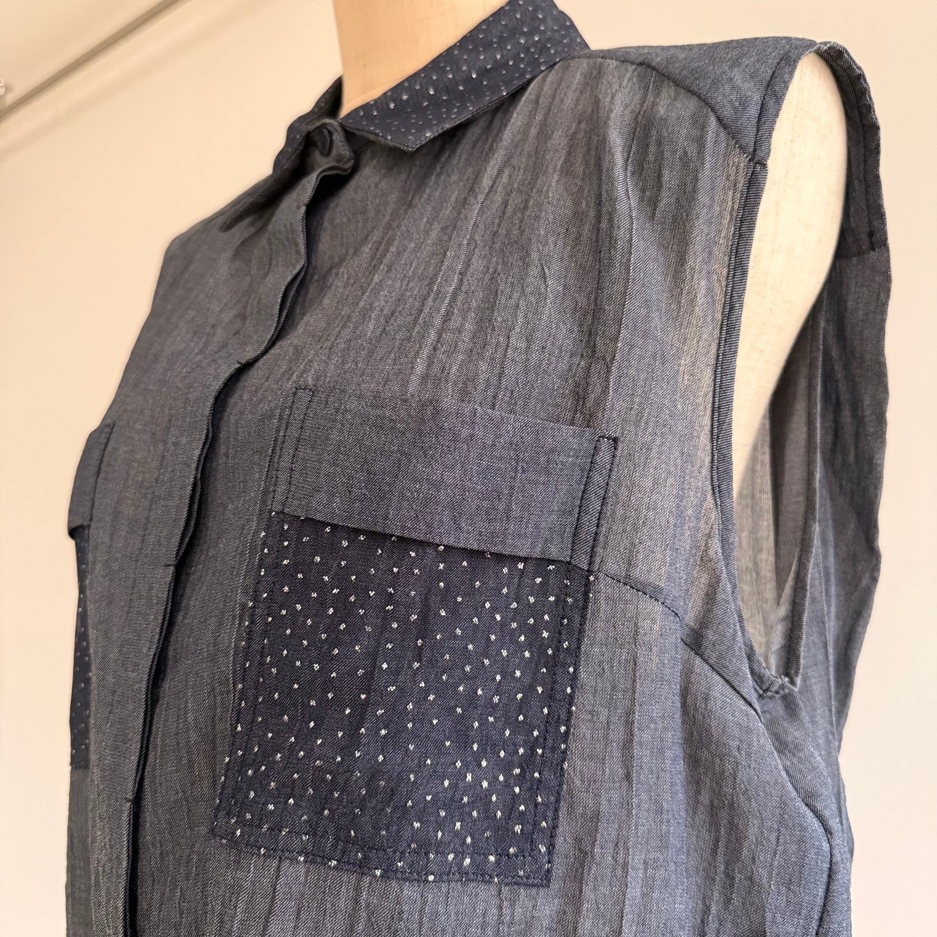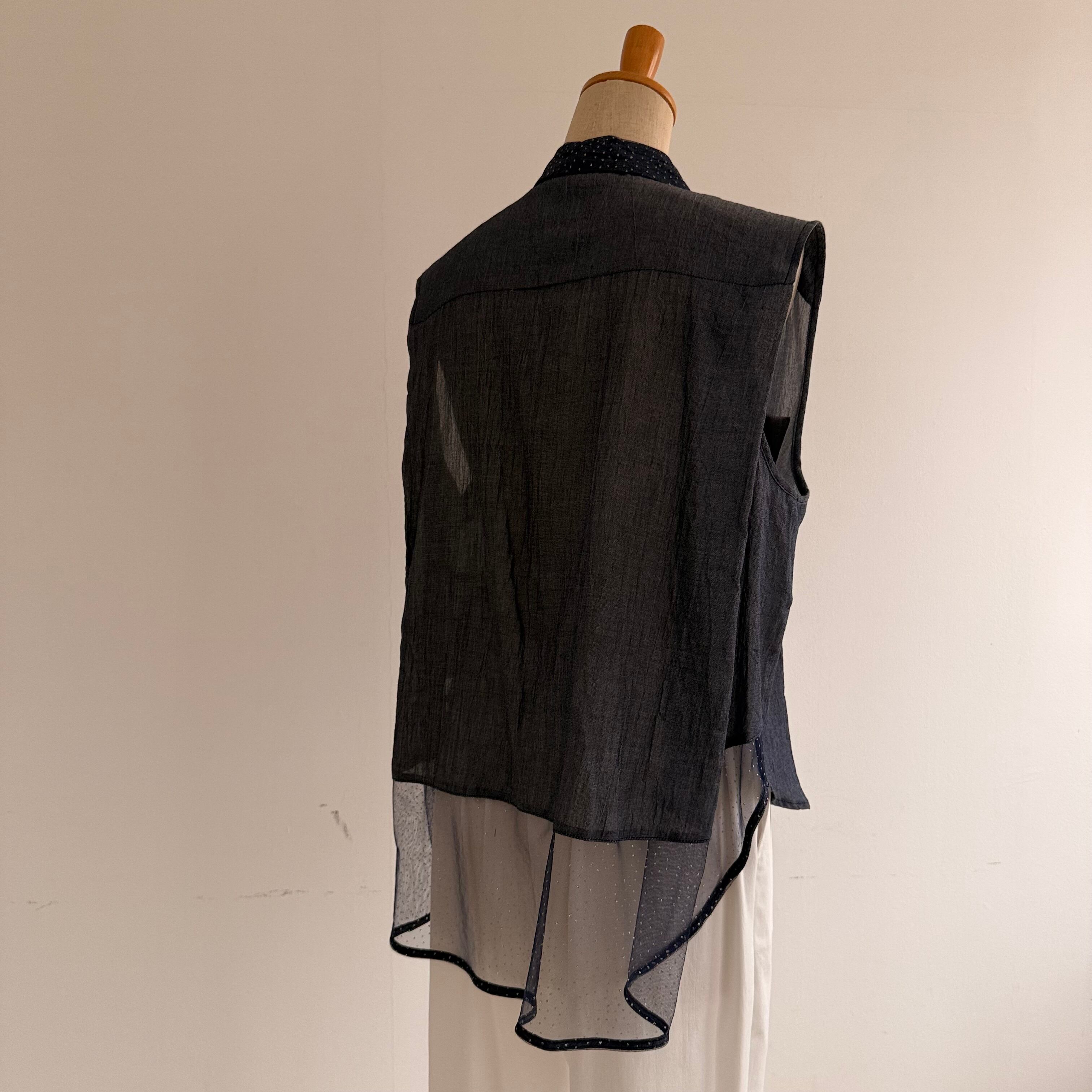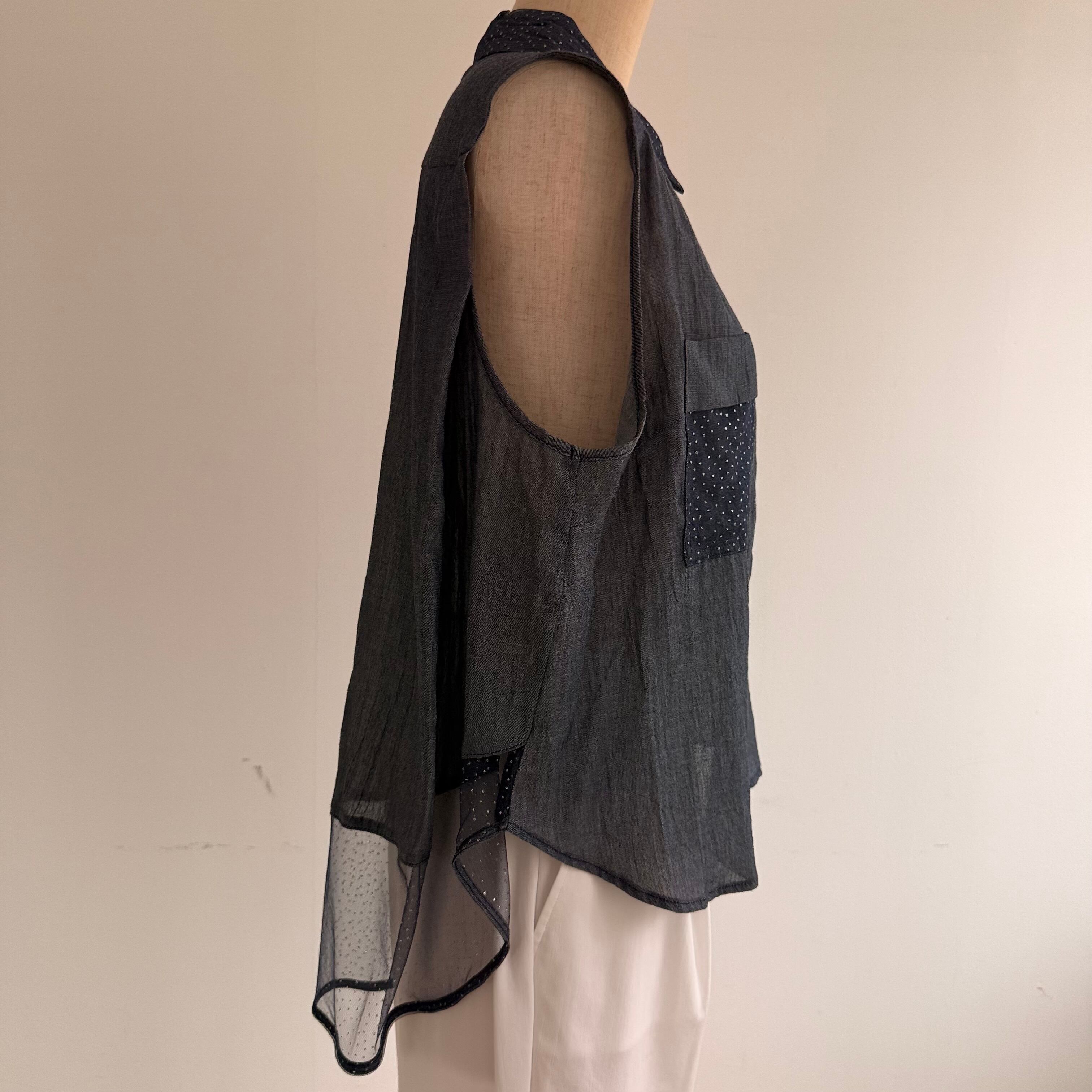 後ろメッシュキラキラ素材ノースリーブブラウス
