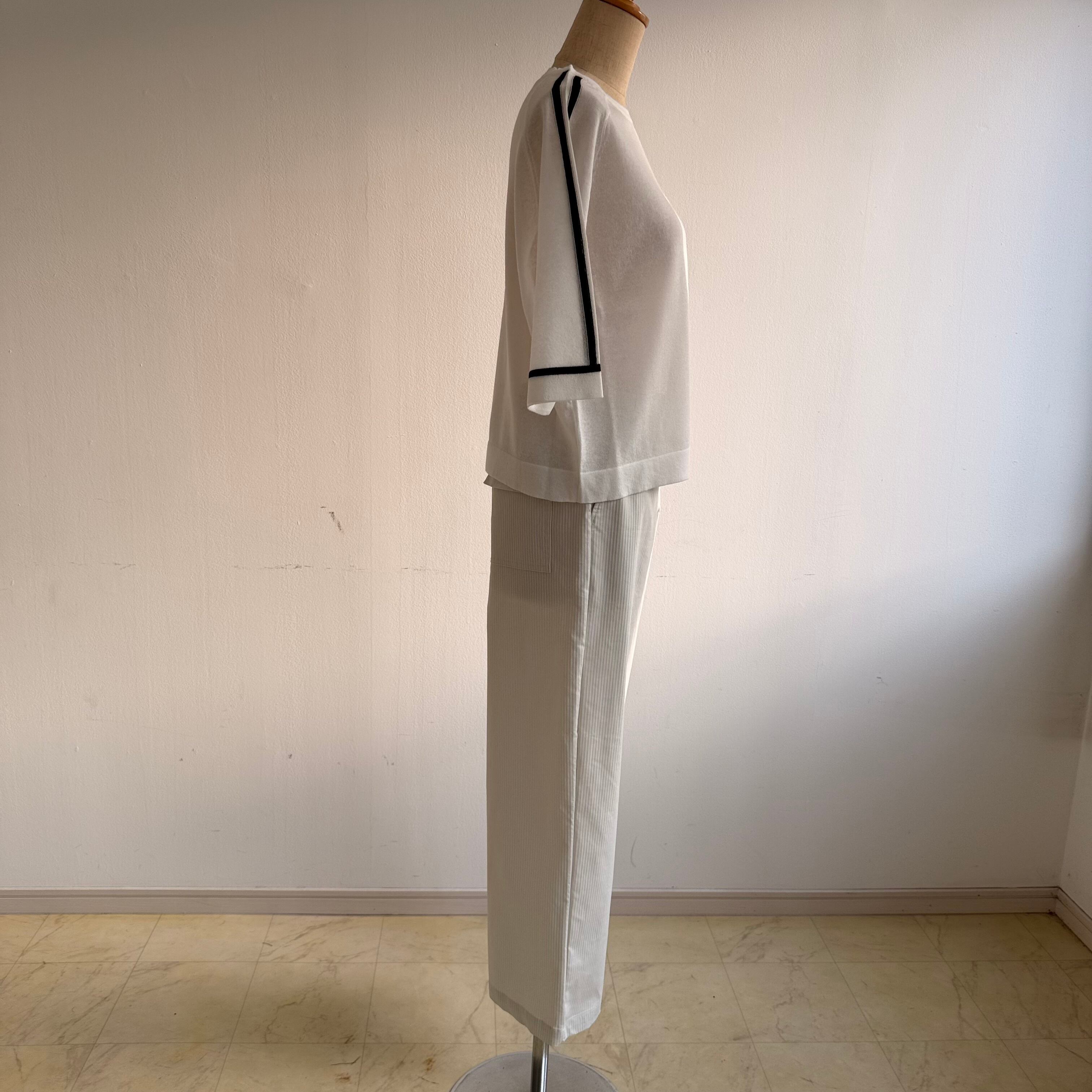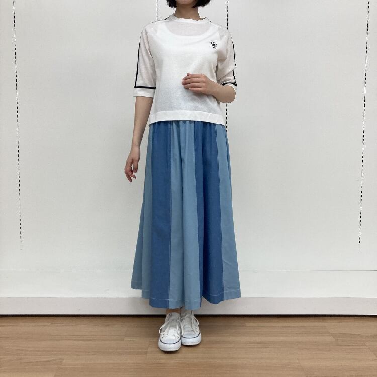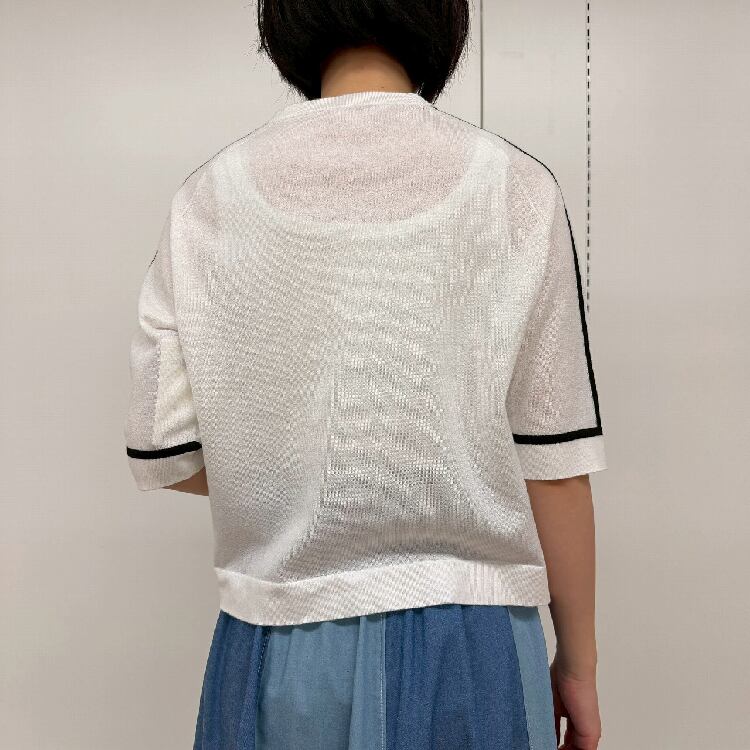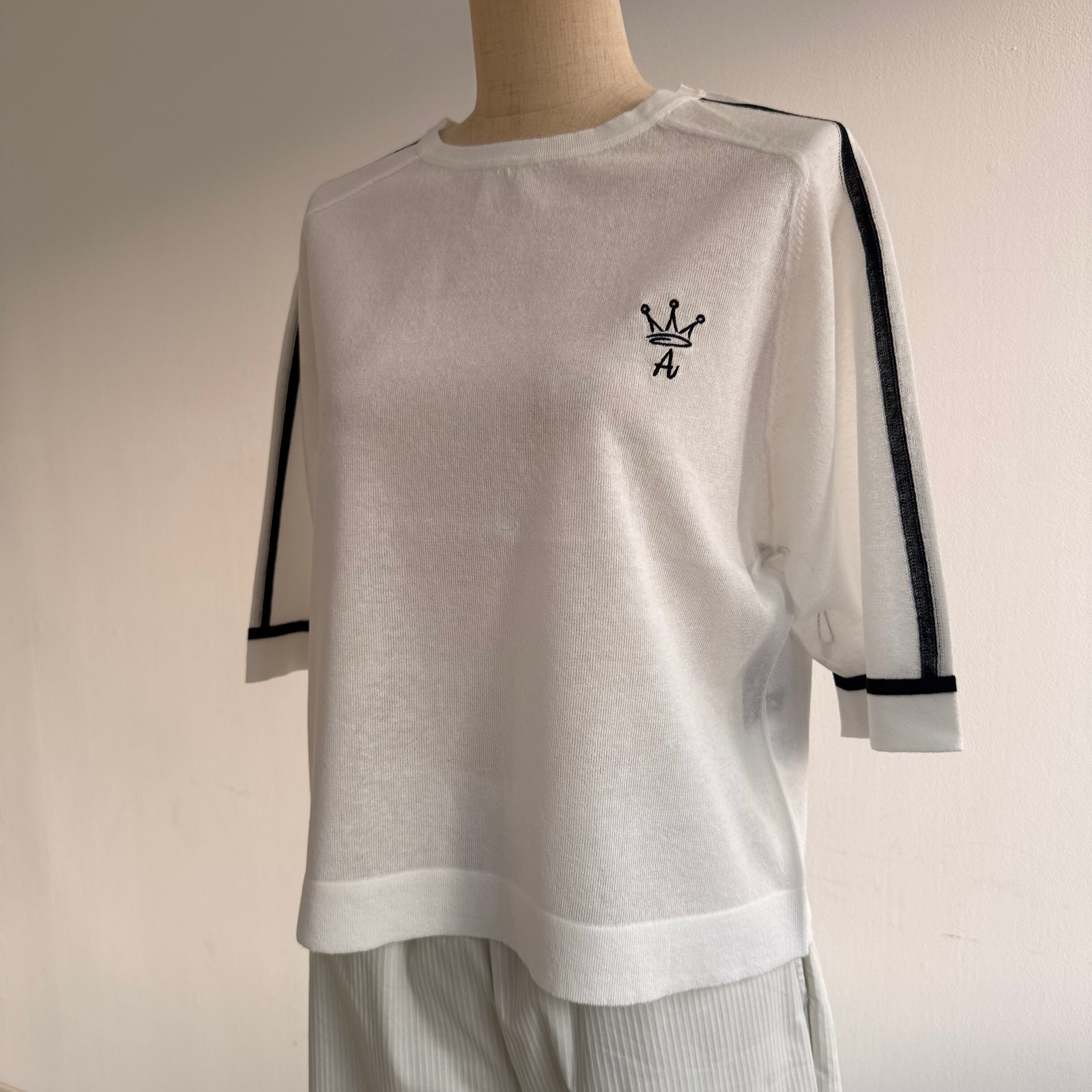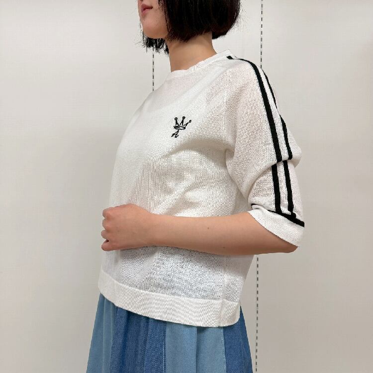 14G ワンポイント刺繍入り 袖ラインニット