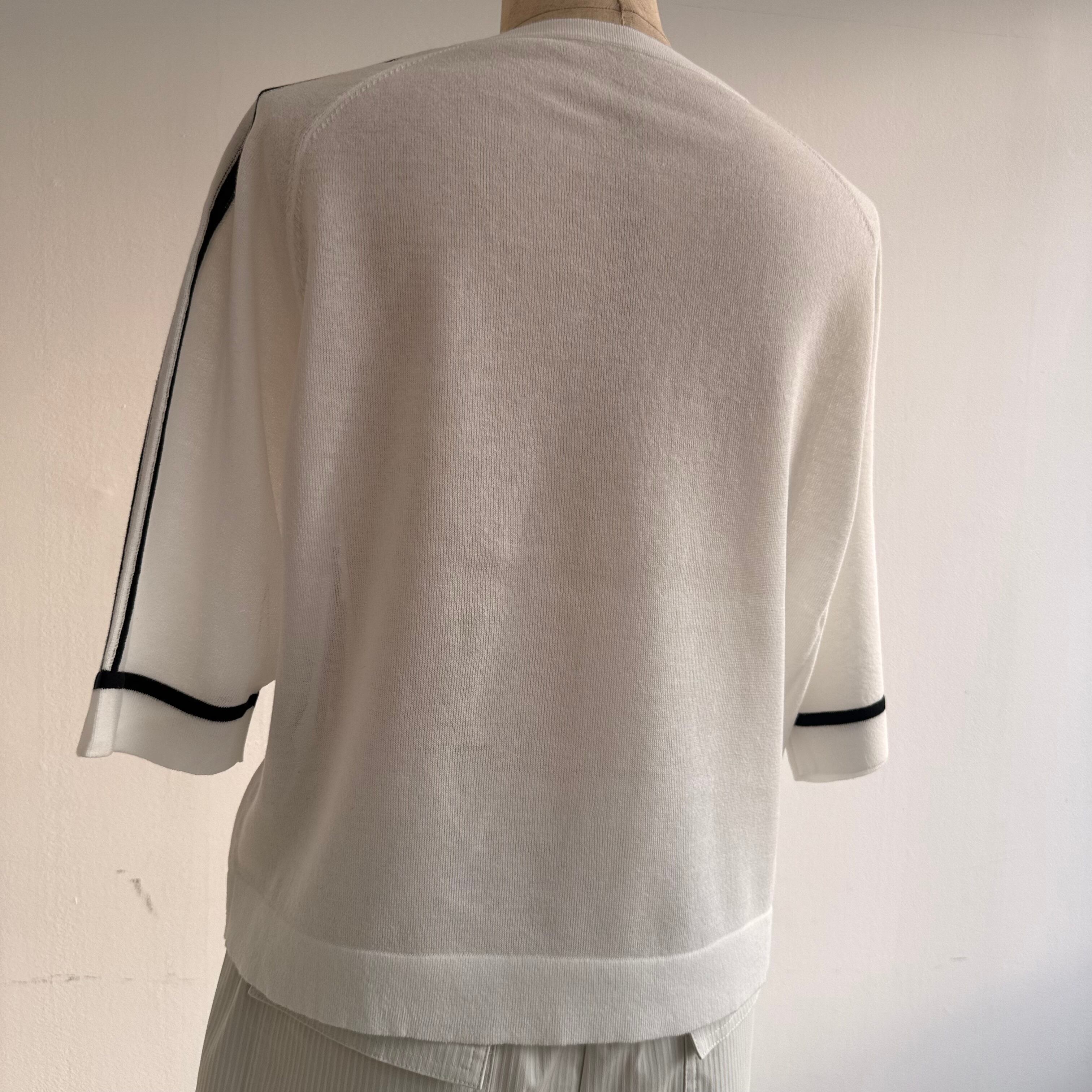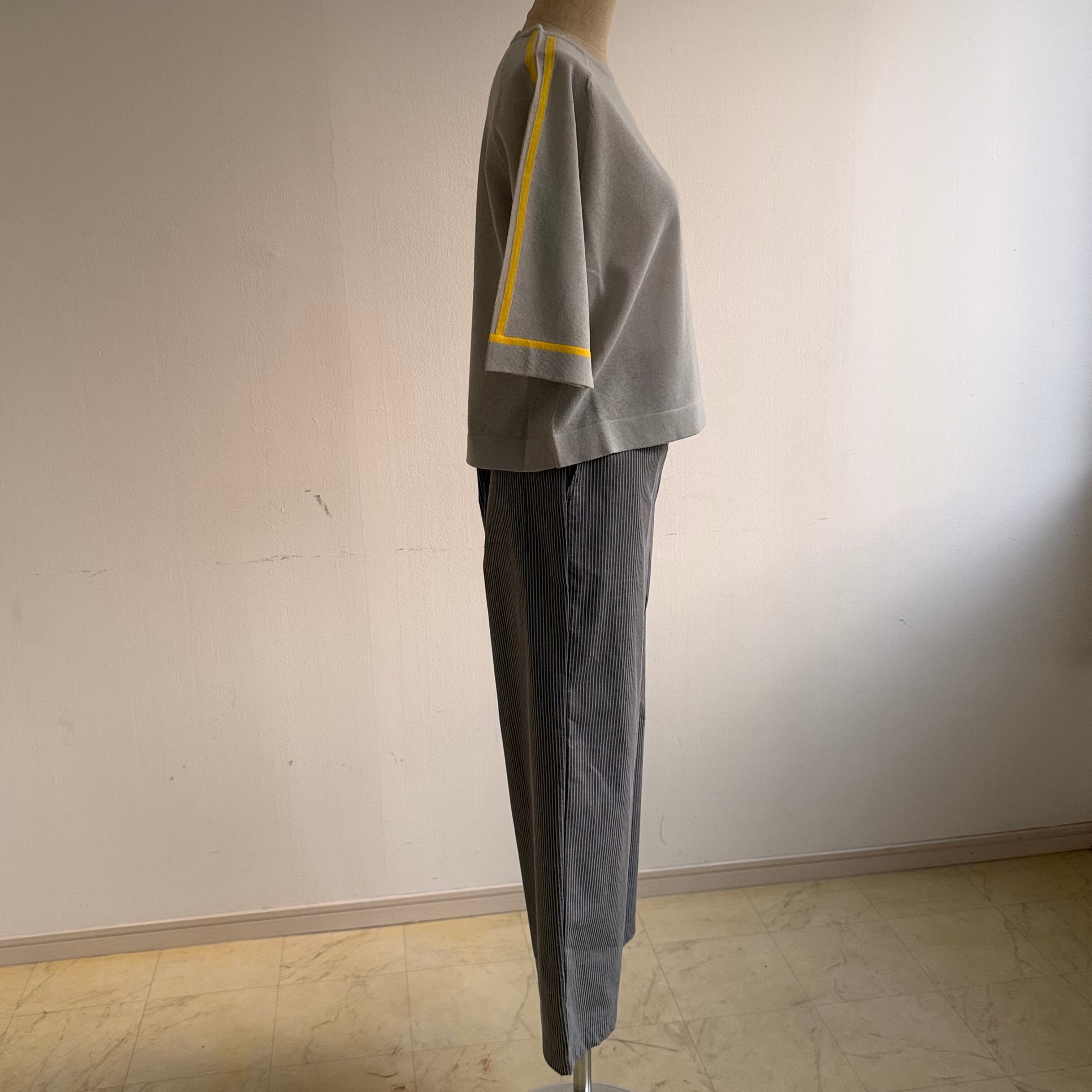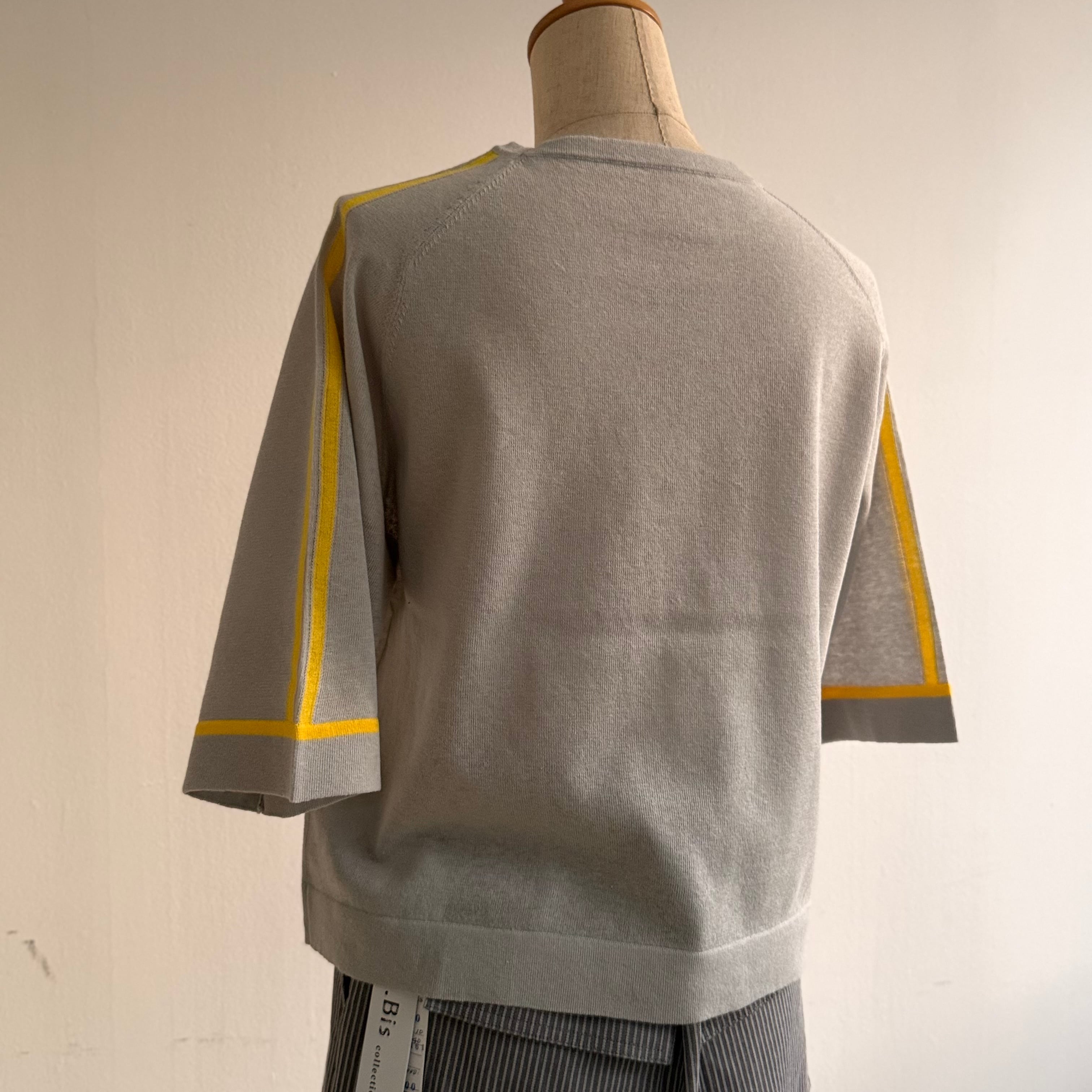 14G ワンポイント刺繍入り 袖ラインニット
