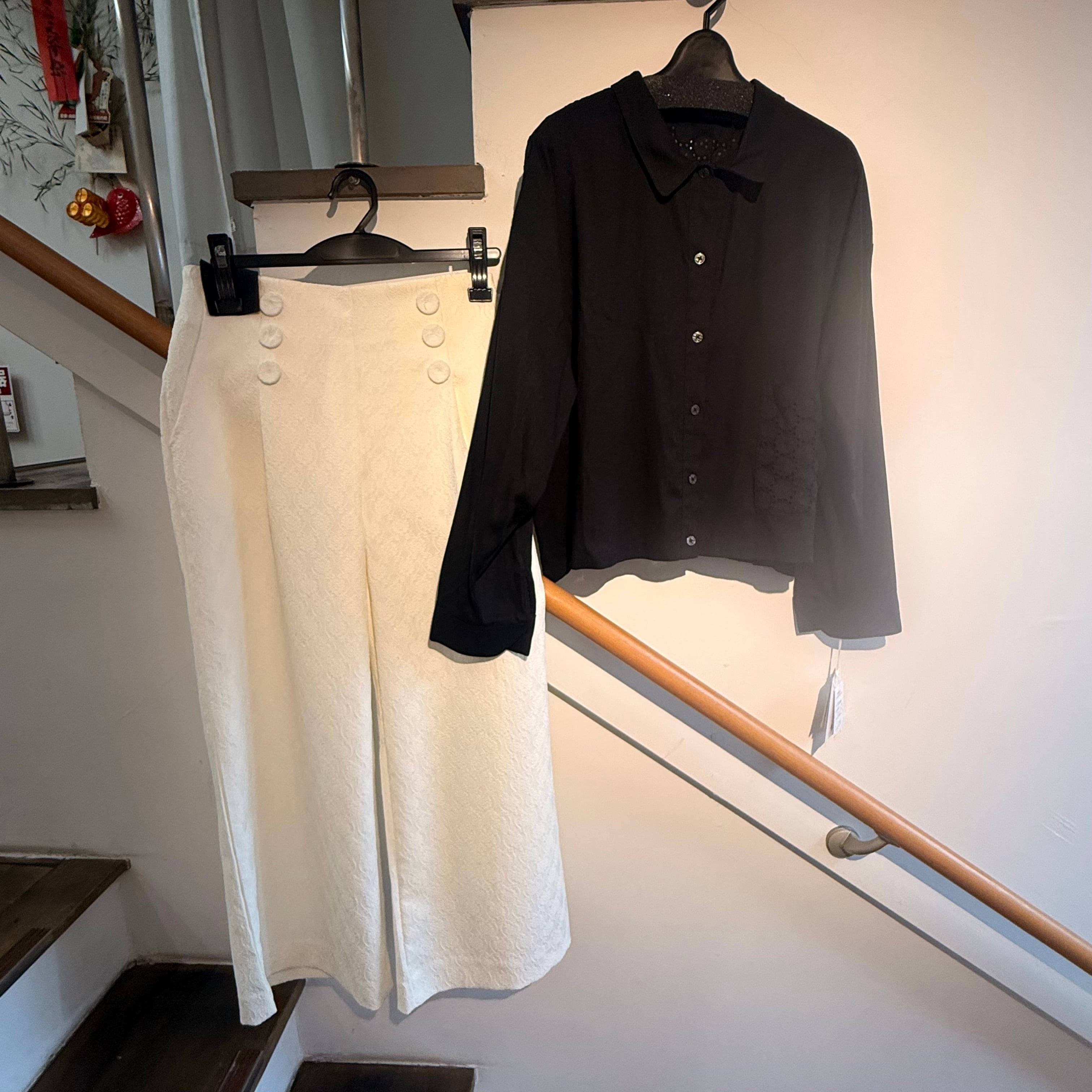 レーヨン麻レース使い長袖ブラウス