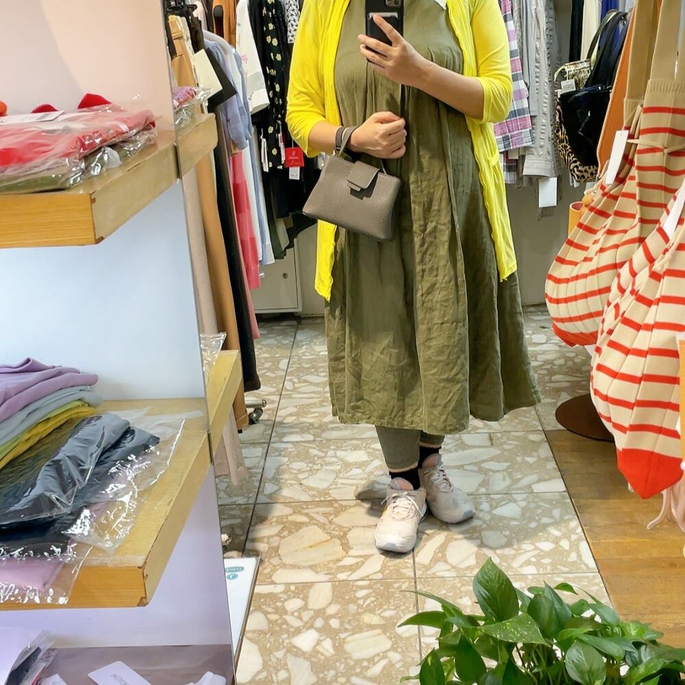 三つ折り財布、スマホ、ハンカチと入ります。